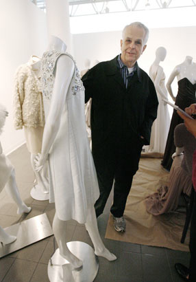 “I was fascinated with glamour from the movies,” he said, dressed casually in running shoes and black pants and jacket. “I loved the way fabric draped, the way my aunt matched stripes and plaids, overlapped lace.”